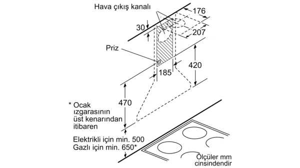 ● Hava çıkışlı boyutlar (YxGxD): 790-1015 x 598 x 470 mm