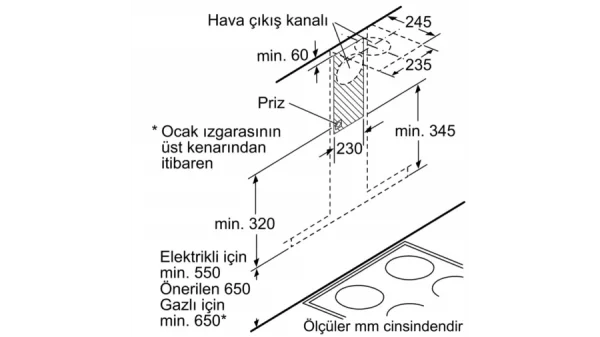 hava çıkışlılarda ,yoğun kademede çalışırken hava çekme : 700