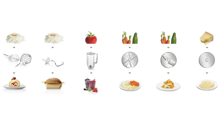 Adım adım malzeme eklemeyi gerektiren tarifler artık çok kolay: otomatik park pozisyonu sayesinde hamur aksesuarları karıştırma haznesinin arkasında durarak kolaylıkla malzeme eklemenize olanak tanır.Çok yönlü kullanım: geniş aksesuar gamı sayesinde çok yönlü kullanım